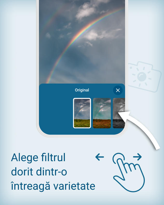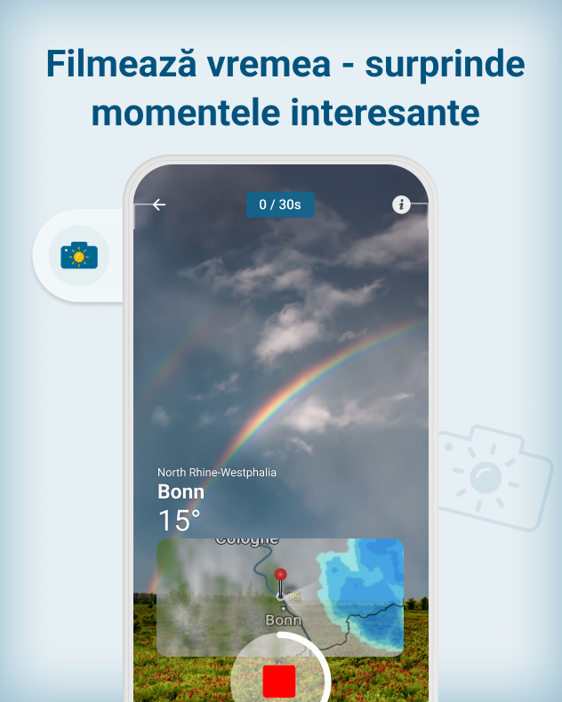 • Înregistrează videoclipul, adaugă muzica și filtrele dorite, direct în aplicația Meteo & Radar