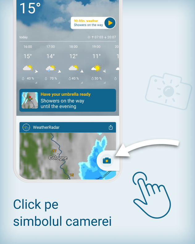 • Localitatea, data, ora și imaginile radar meteo sunt adăugate automat, de aplicația noastră