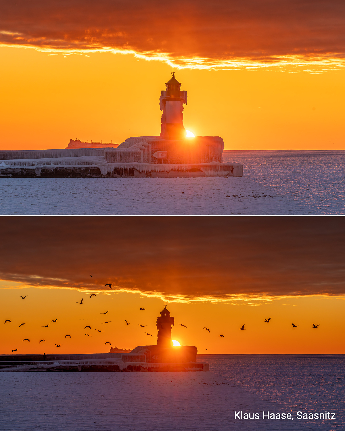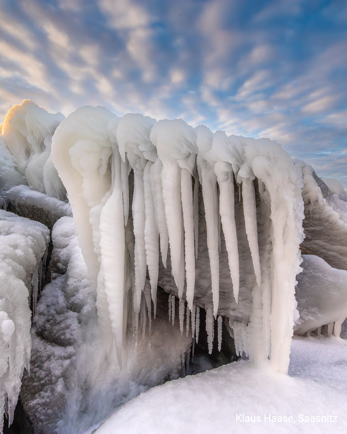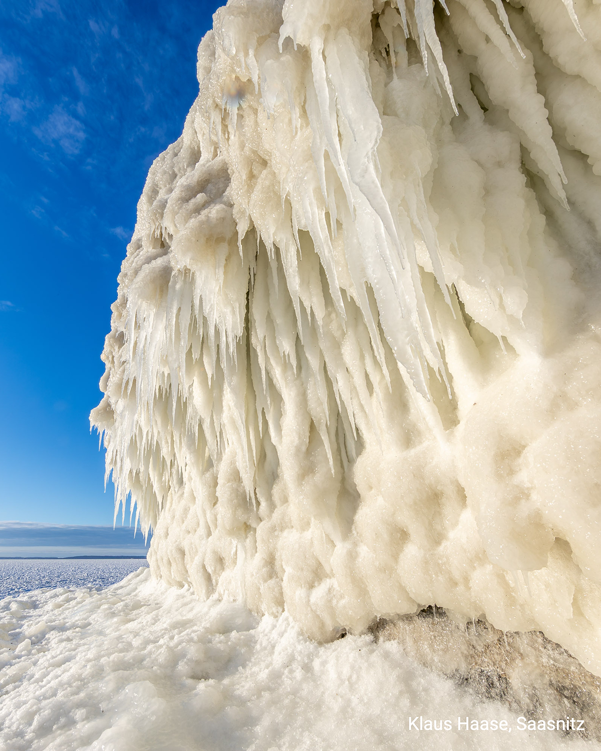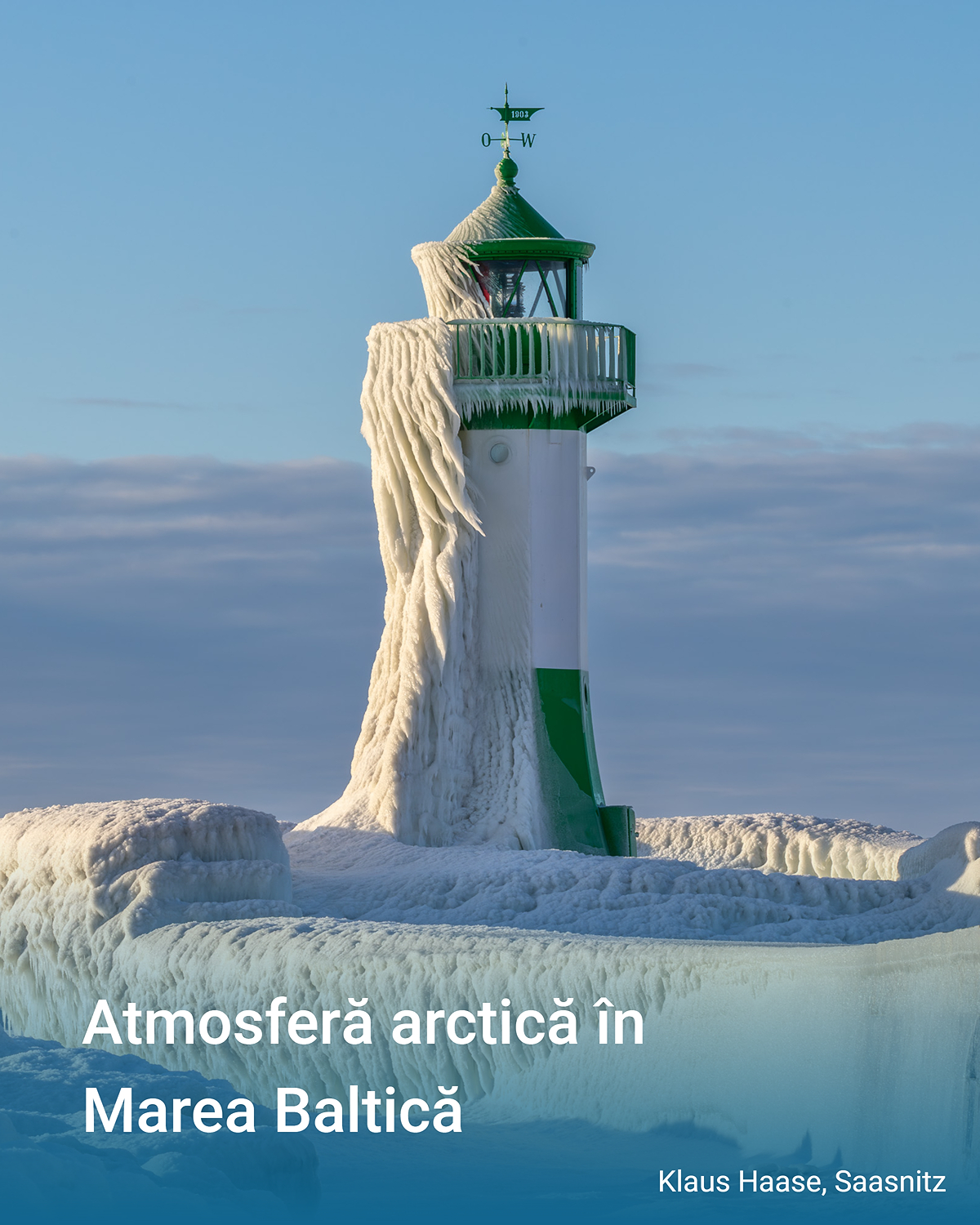 Acolo unde, de obicei, valurile se izbesc de țărm, frigul a adus liniștea. Marea a fost „redusă la tăcere” de ger, iar imaginile surprinse la Sassnitz, pe insula germană Rügen, sunt spectaculoase: sloiuri de gheață înalte de peste un metru, stânci îmbrăcate în gheață cu forme bizare și un far acoperit complet de gheață.