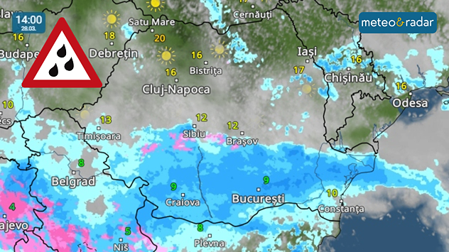 Radar meteo: Începând de vineri, 27 martie, până luni, 30 martie, va ploua abundent în mai multe regiuni.