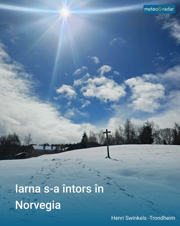 În weekend, aversele puternice de ninsoare au adus din nou un peisaj hibernal în unele regiuni din Norvegia. Solul a fost acoperit temporar de zăpadă chiar și în orașul Trondheim de pe coasta Atlanticului, chiar dacă temperaturile s-au menținut ușor peste 0°C.