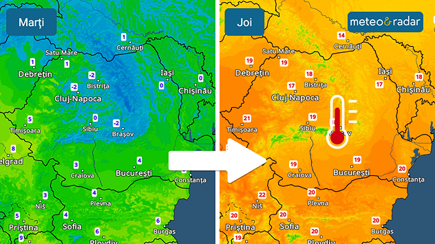Radarul temperaturilor: După minime în jur de 0 grade în multe zone, marți dimineața, termometrele vor arăta până la 20 grade, joi.