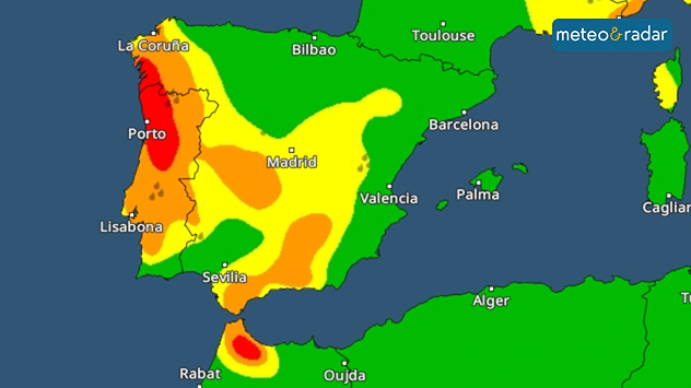 Mai multe avertizări de vreme severă sunt în vigoare pentru zone extinse din Portugalia și Spania.