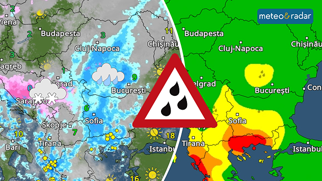 Din estul Greciei, prin Albania, până în Croația și Bosnia, sunt posibile cantități de precipitații de 150-200 de litri în unele locuri și, local, chiar și până la 300 de litri pe metrul pătrat, așa că vor fi posibile inundații.