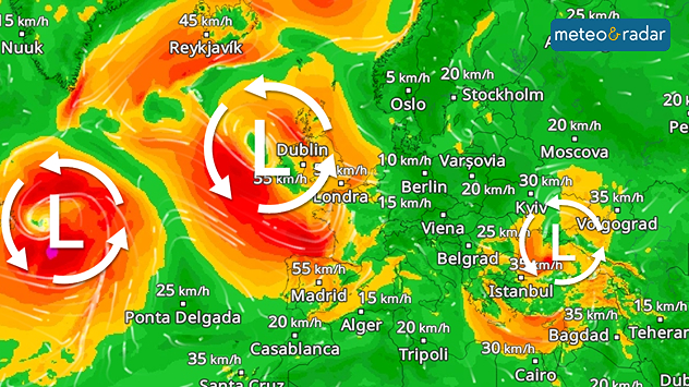 Radarul vântului arată mai mulți cicloni puternice deasupra Atlanticului și în Europa, inclusiv cel care afectează România.