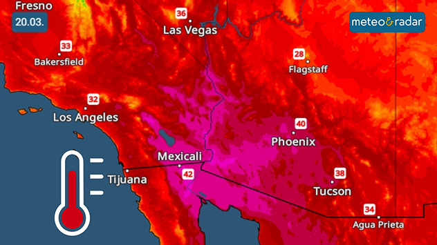 Un val de căldură neobișnuit de timpuriu a atins apogeul în sud-vestul Statelor Unite. Temperaturile au urcat frecvent la 35–40°C, iar la Yuma, aproape de granița cu Mexicul, s-au înregistrat 42°C.