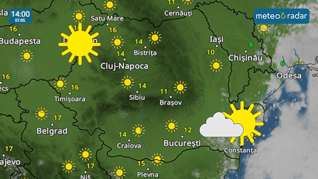 După o dimineață rece, cu temperaturi negative în mare parte din țară, sâmbătă ne așteaptă o vreme plăcută, dar cu diferențe termice destul de mari: în vestul țării se vor atinge 16-18°C, în timp ce în regiunile estice vor fi în jur de 10°C și chiar mai puțin în Dobrogea.