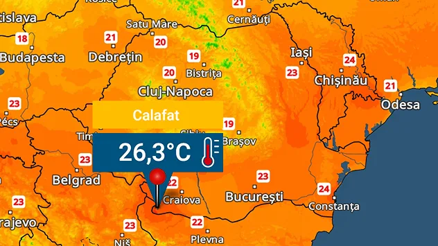 Astăzi seara și noaptea rămâne senin. Temperatura actuală este de 13 grade și scade în cursul nopții până la aproximativ 5 grade.